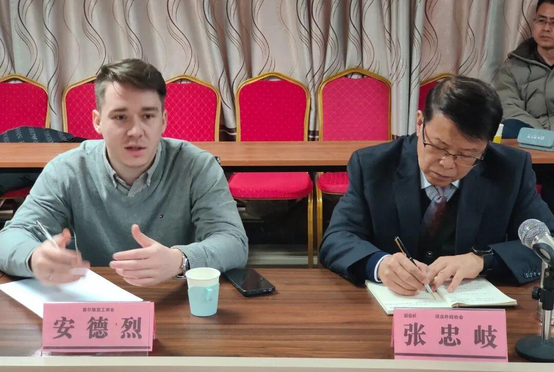 为促进中国与塞尔维亚企业间的经贸合作与项目对接,2025年2月11日上午,由河北省对外投资和经济合作协会组织的“中国-塞尔维亚企业家项目对接交流会”在河北省对外投资和经济合作协会会议室成功举办。会议由协会副会长张忠岐主持。本次会议邀请到了塞尔维亚工商会顾问安德烈先生。河北省企业代表河北电机股份有限公司总经理李义、神州节能集团有限公司总经理高腾、廊坊宠笑堂兽药销售有限公司总经理蒋林勇、河北盛和门窗科技有限公司董事长康曦文、河北善立贸易有限公司总经理陈立齐、河北冰蓝制冷设备有限公司总经理闪伟、河北丝路通供应链有限公司总经理尘素霞等参加会议。协会副秘书长也参加了会议。